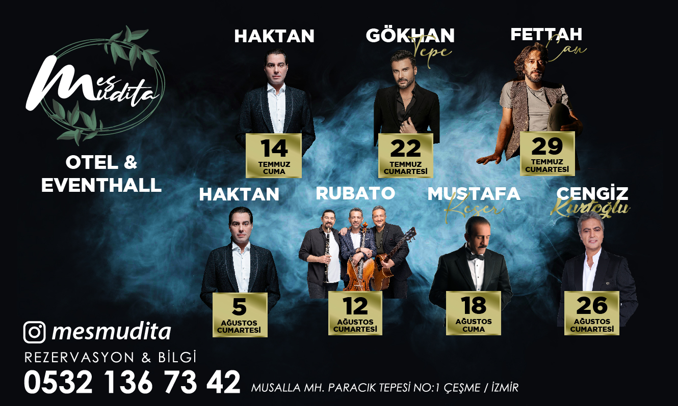 2021 yılında tamamen yenilenen ve sizler için Efendel Group tarafından hizmete sunulan Mes Mudita Çeşme, en mutlu günlerinize imza atmaya hazır. 7/24 sizlere en iyi hizmeti vermek için çalışan Mes Mudita, tüm organizasyon ve konaklama talepleriniz için sizleri bekliyor.